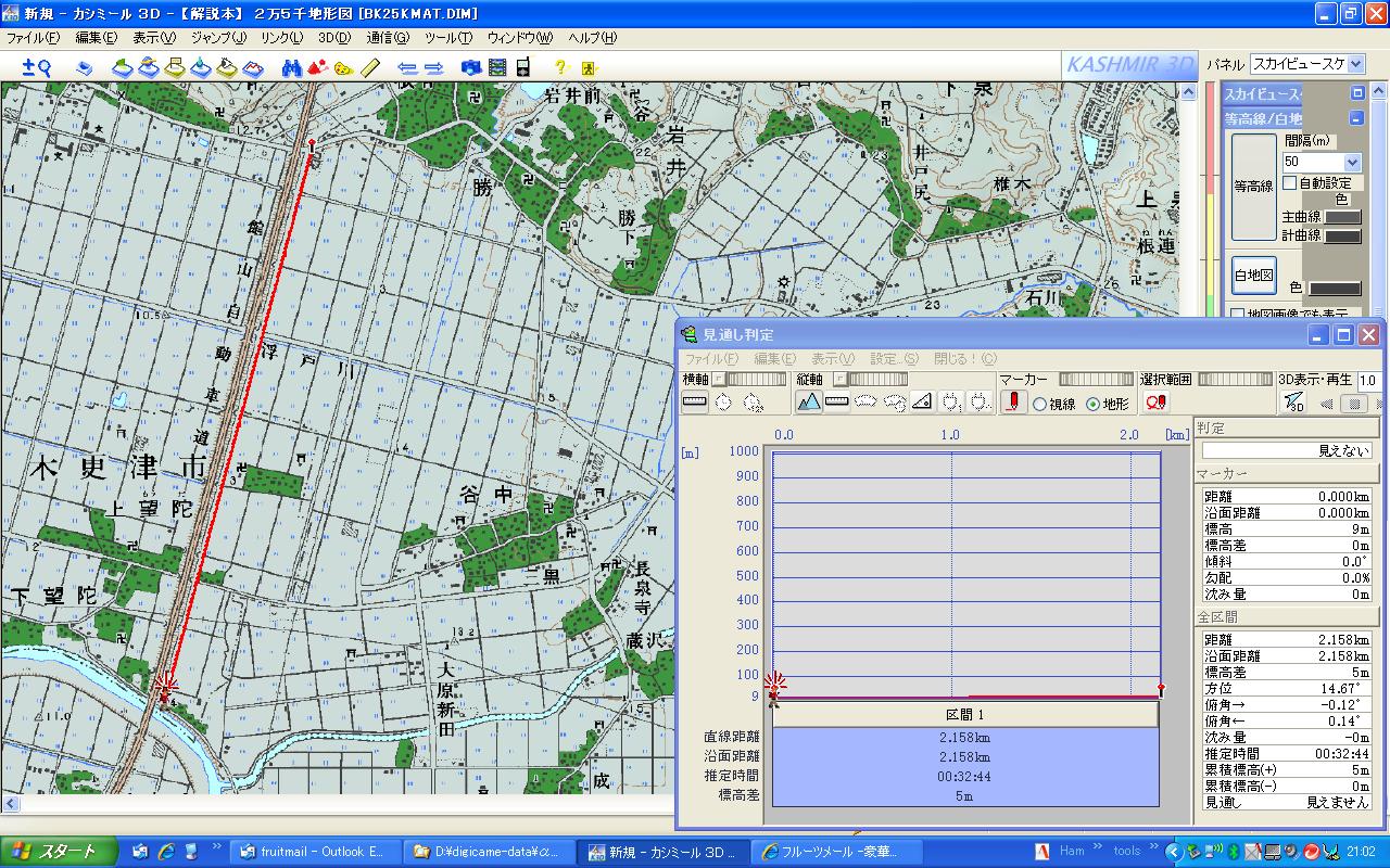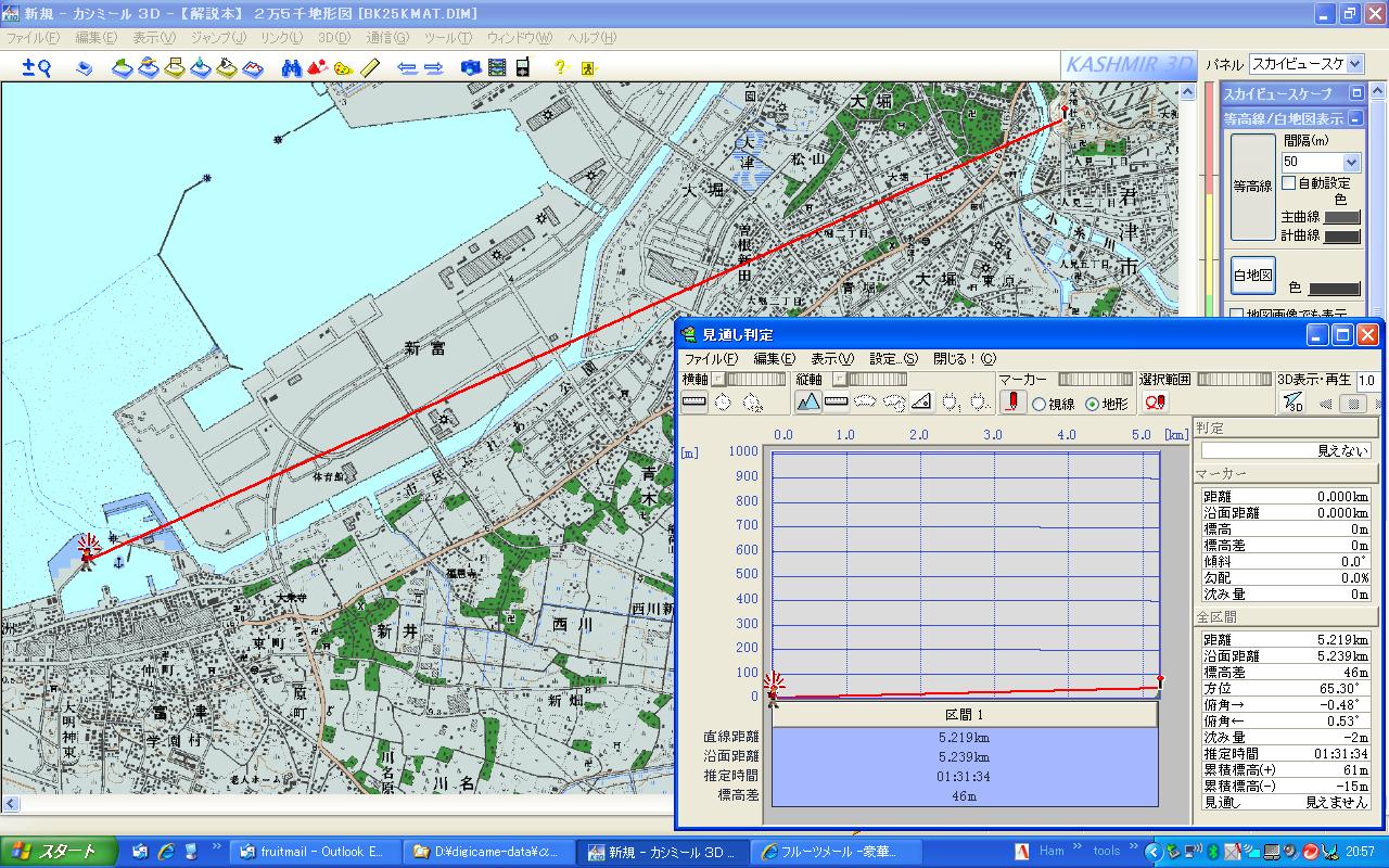 小坂さんのカシミール計測での2点間見通し距離は101.265Kmです。